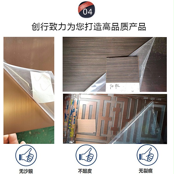 表面:拉丝、镜面、喷砂、蚀刻、花纹、发纹、镀铜、组合工艺、表面无指纹等。